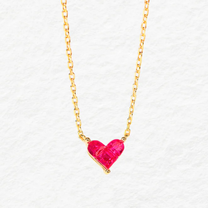 Tiny Ruby Heart Necklace 925Silver 14K Vermeil