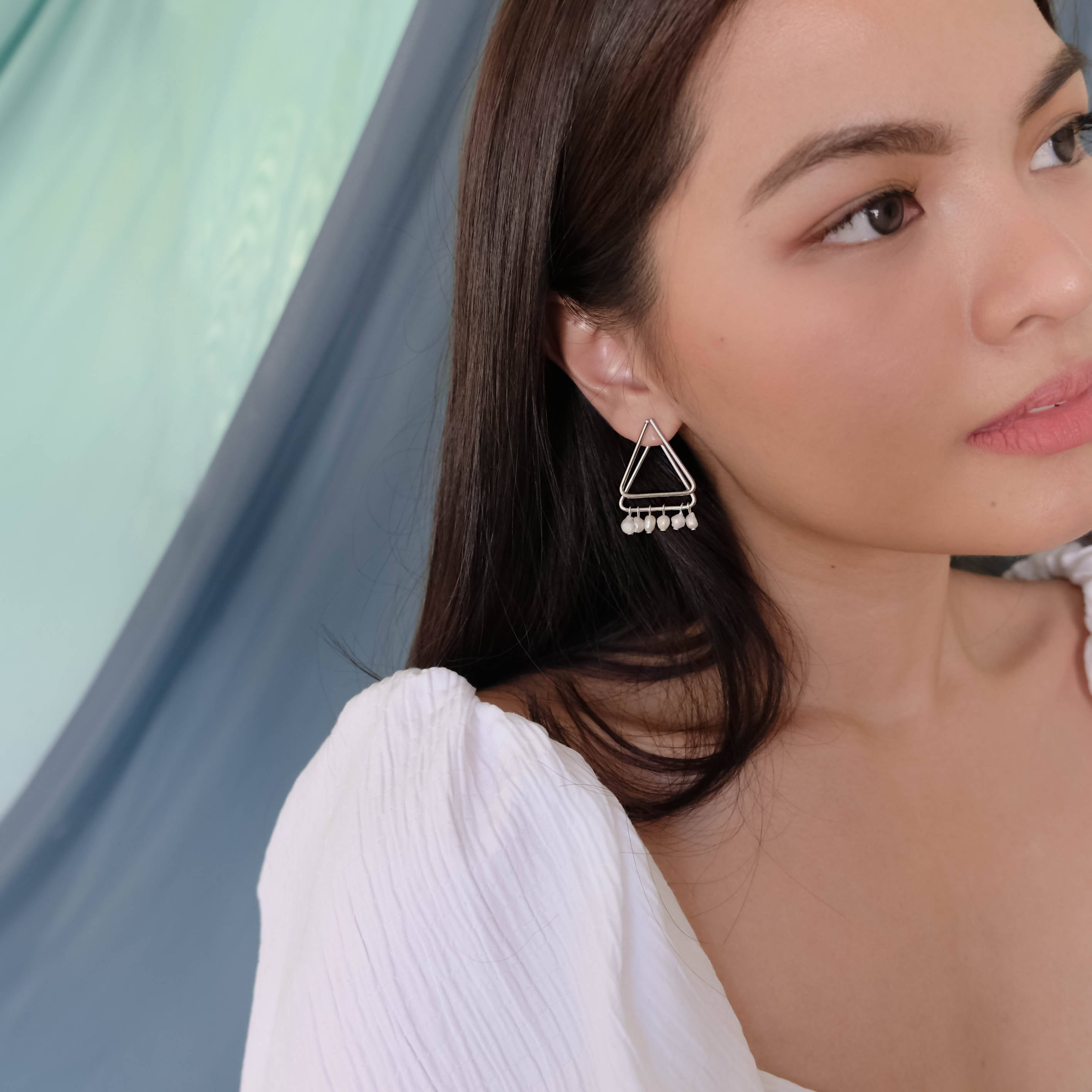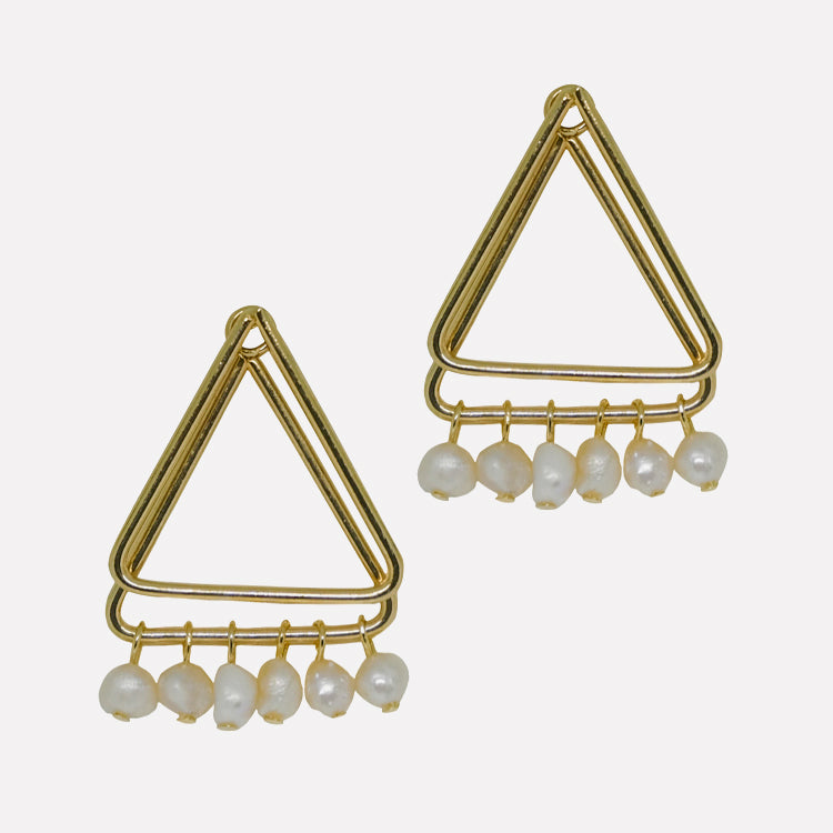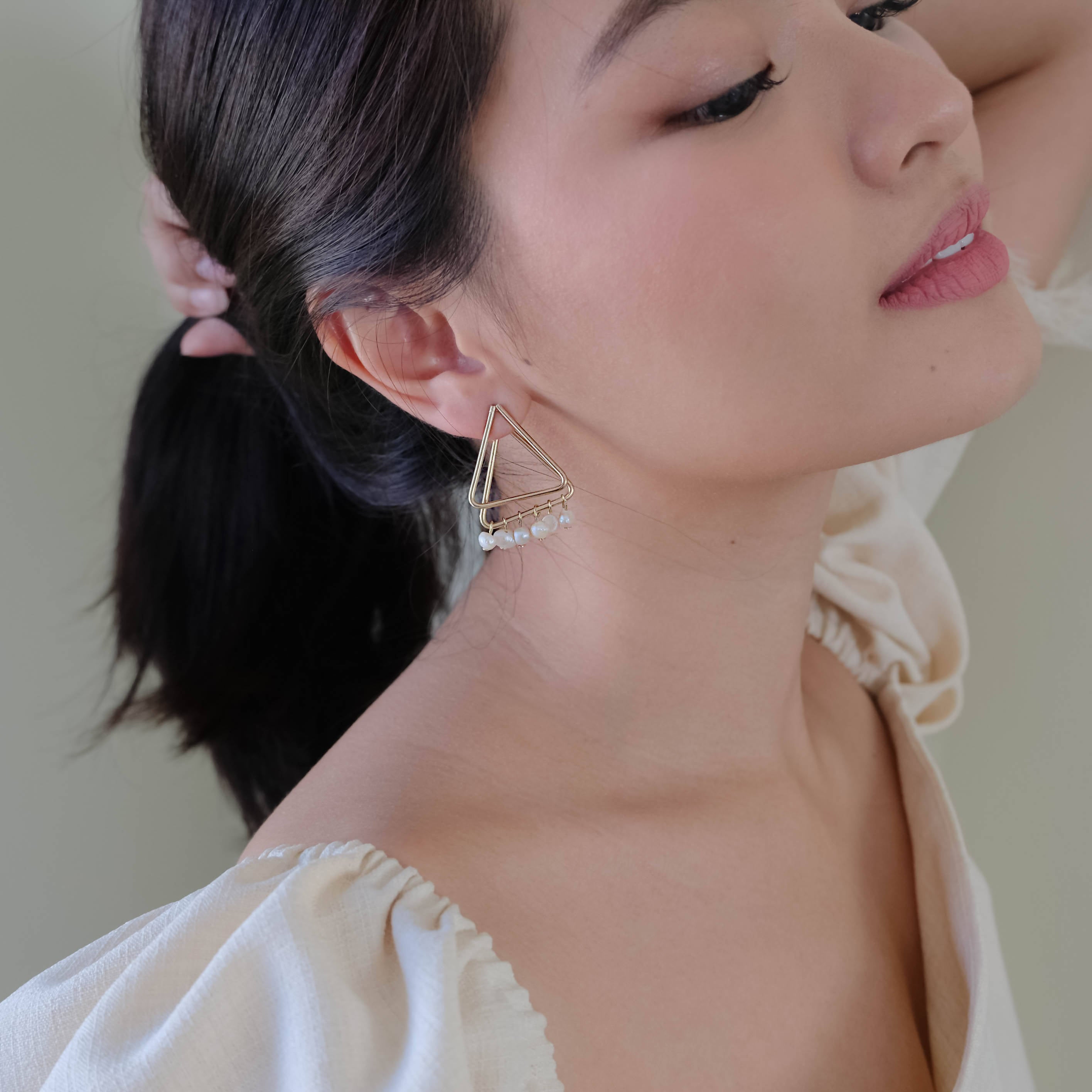 Brass stack earringsComponentsBrassSouth sea pearlsDimensions1.25 inches in lengthLightweightNote: Pearls are baroque- naturally irregularly shaped and may not exactly match as a pair. Expect differences in shape, texture, coloration and size.