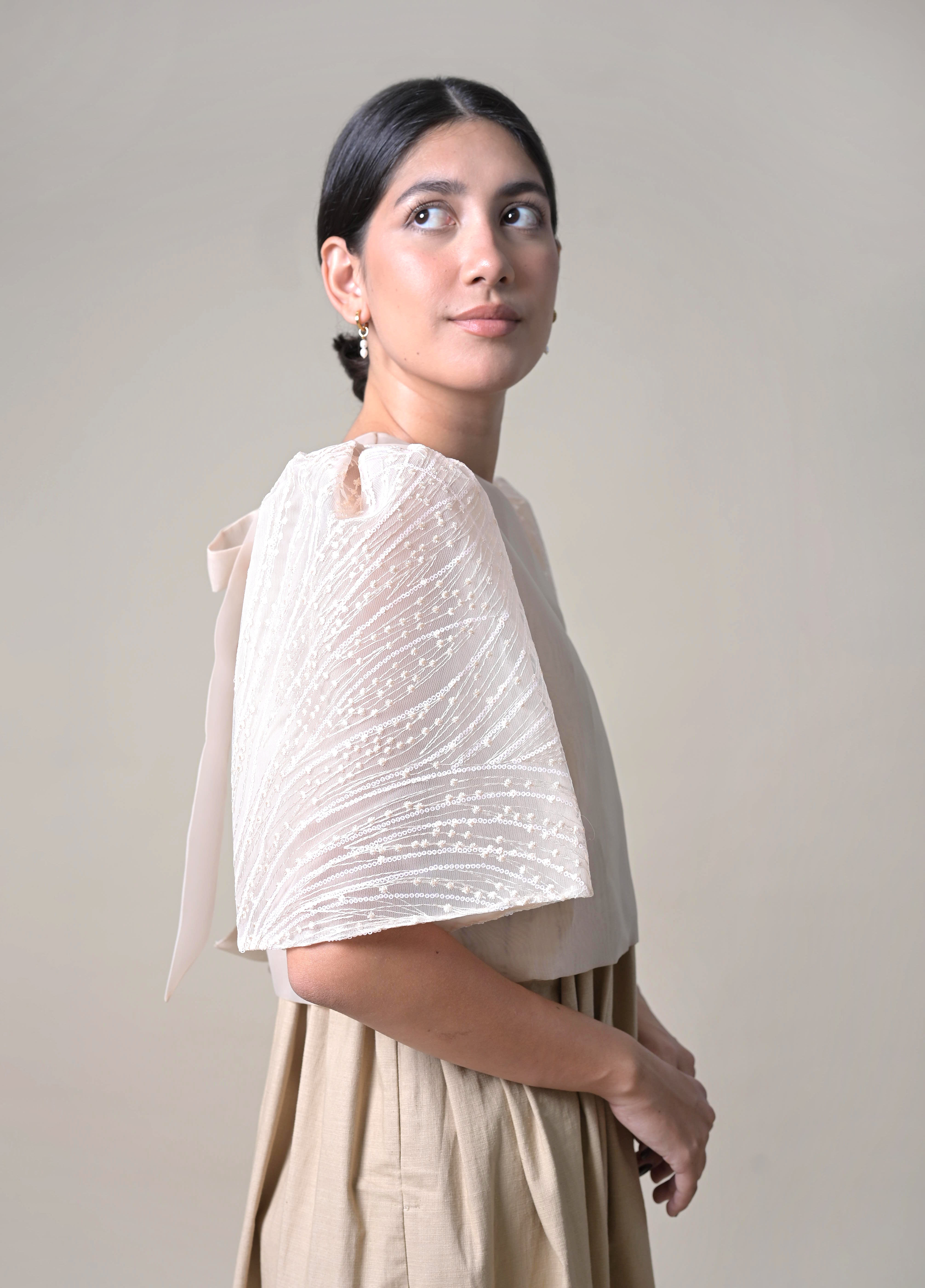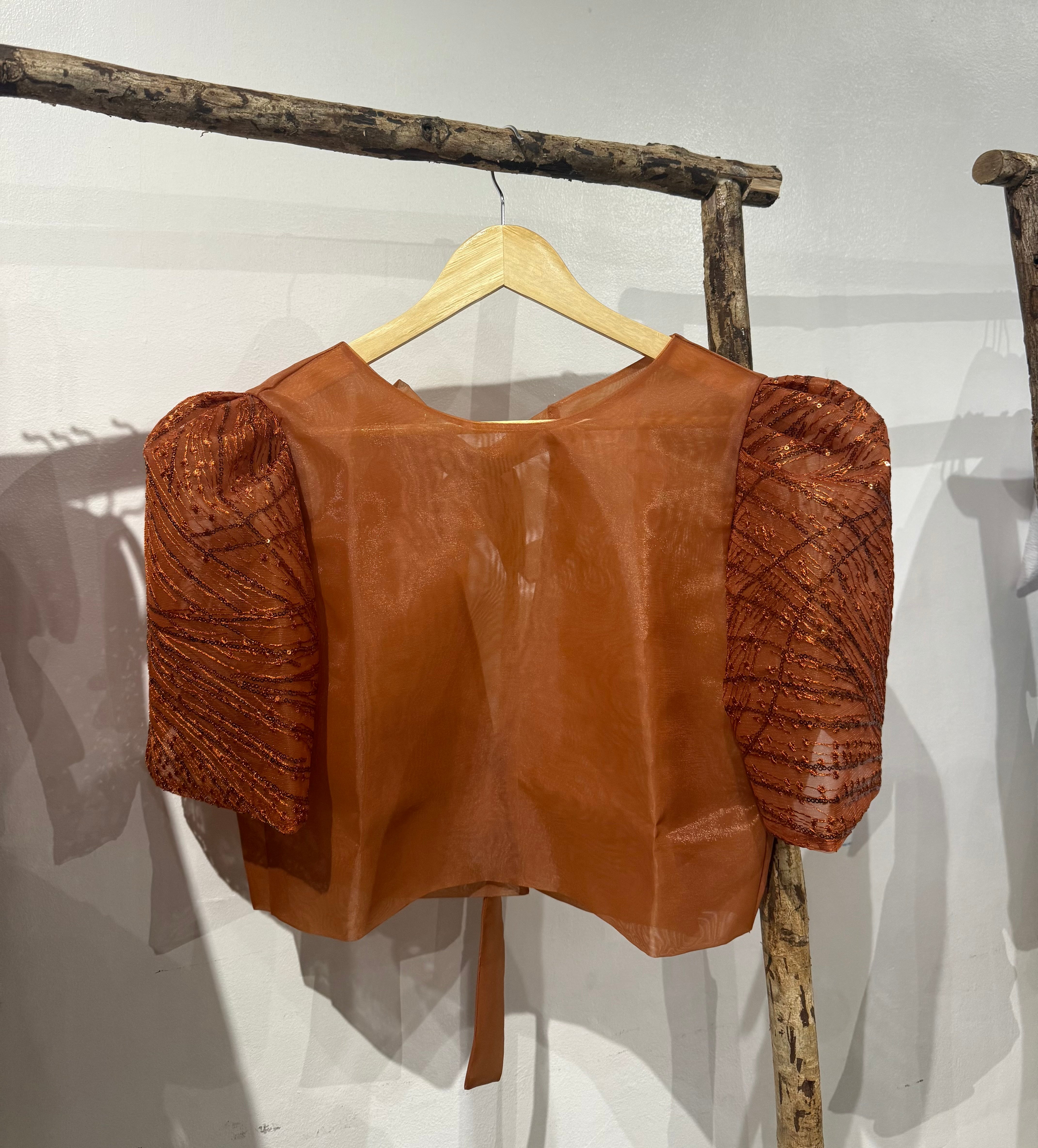 KIMONA BLOUSE also known as the top part of Filipiniana Terno attire that embodies elegance of our cultural heritage. It is characterized by its loose-fitting, short-sleeved blouse that is typically made from lightweight and colorful fabrics and flowing silhouette. Its butterfly sleeves are wide and voluminous, extending from the shoulder to the forearm, creating a distinctive and graceful appearance. Fabric: 2 FLY MATTE ORGANDI   Sizes : Shoulder-Bust-Length S 14-34-15 M 15-36-17 L 16-38-18 XL 17-40-20 2XL 18-42-21