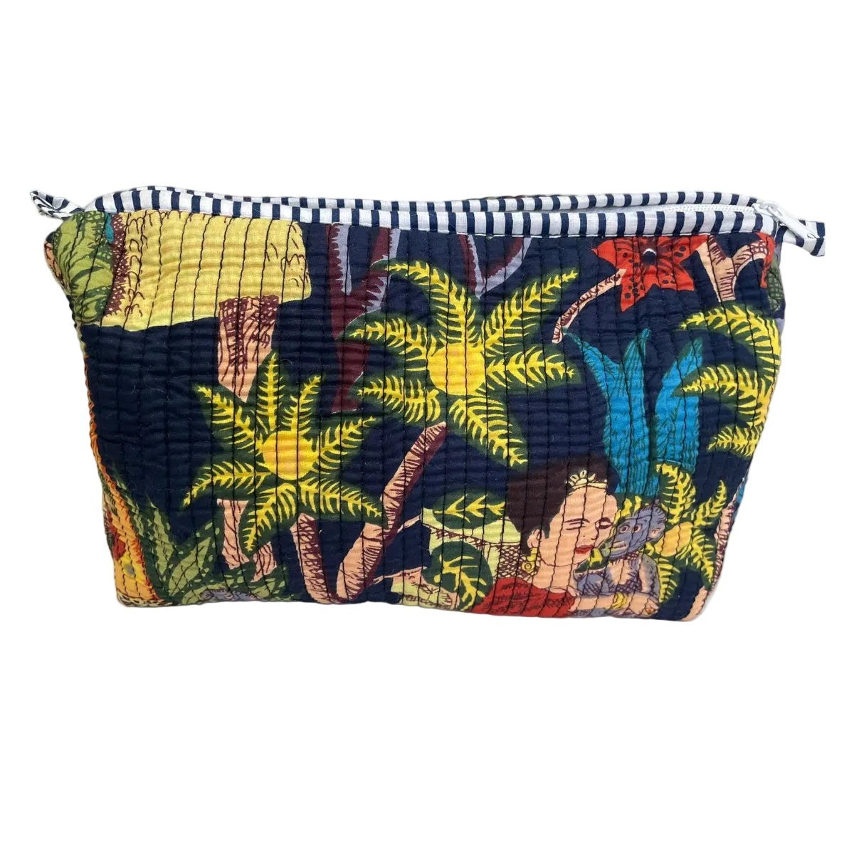 Add a bold tropical touch to your everyday essentials with this quilted tropical pouch. Featuring an artistic jungle-inspired print with lush foliage and vibrant character details, this pouch is both functional and stylish. Its soft quilted texture, lightweight feel, and secure zip closure make it ideal for storing makeup, toiletries, skincare, small accessories, or travel essentials.