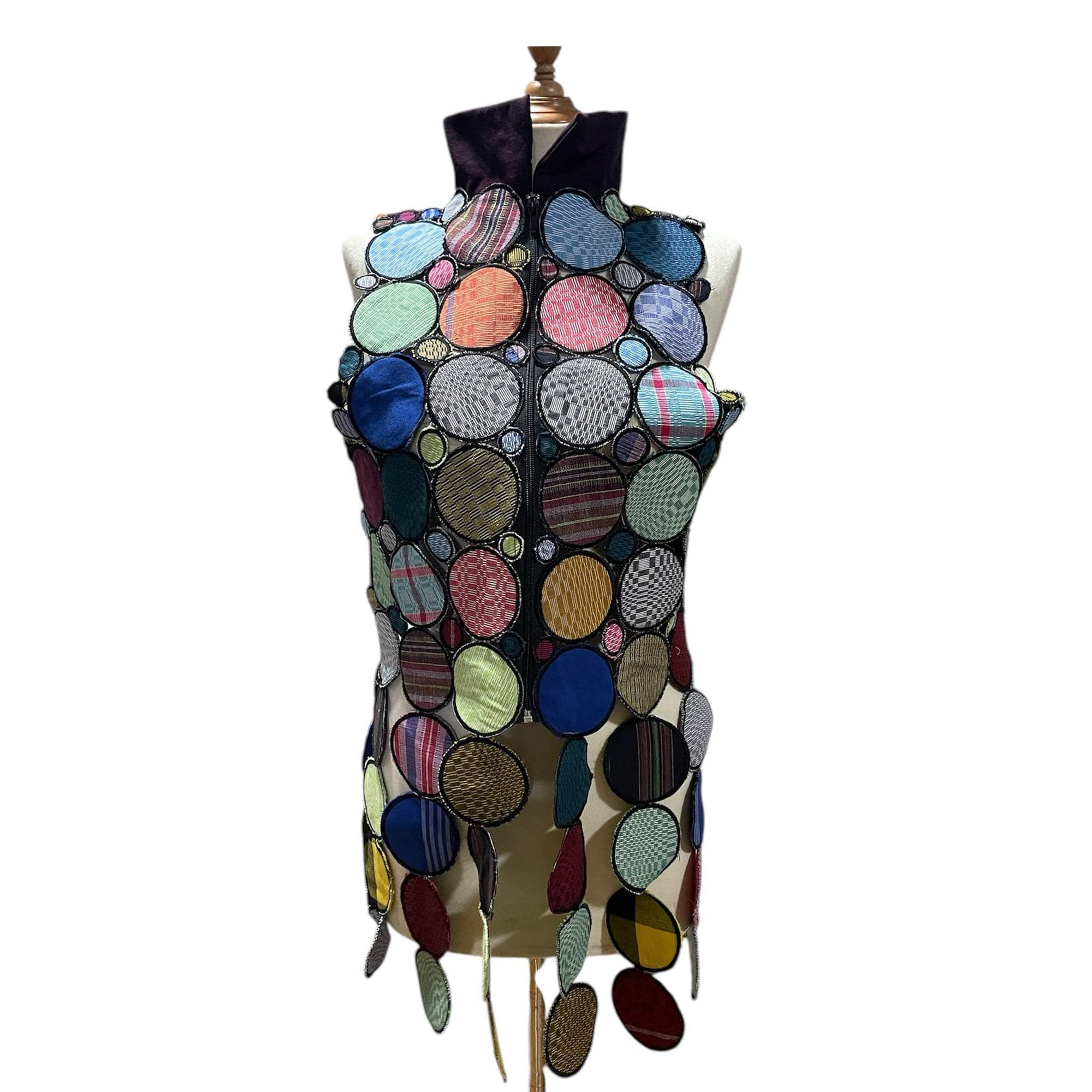 Made of Kantarines fabric vest and leftover cut out pieces. Ulan vest is the perfect piece to accentuate any outfit.