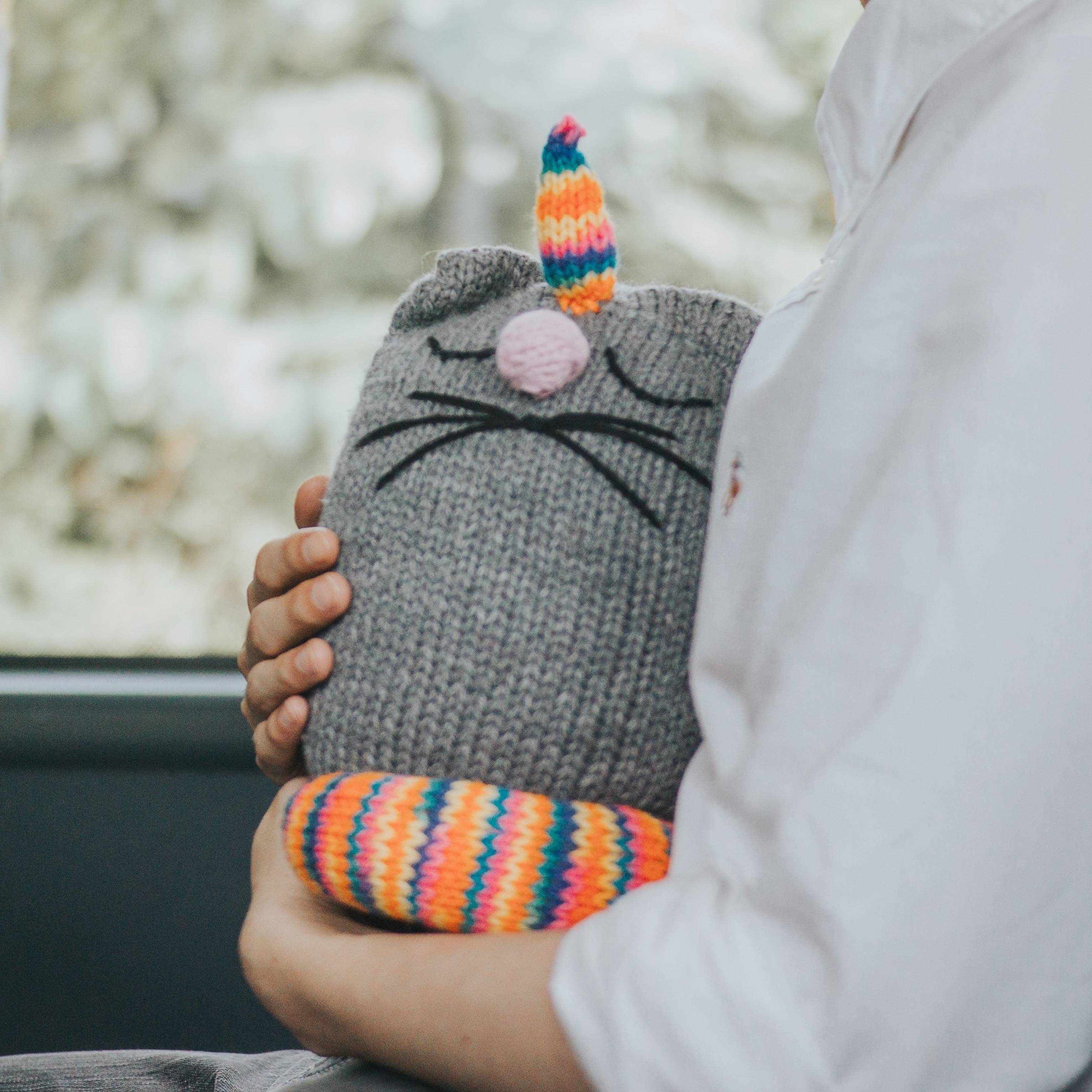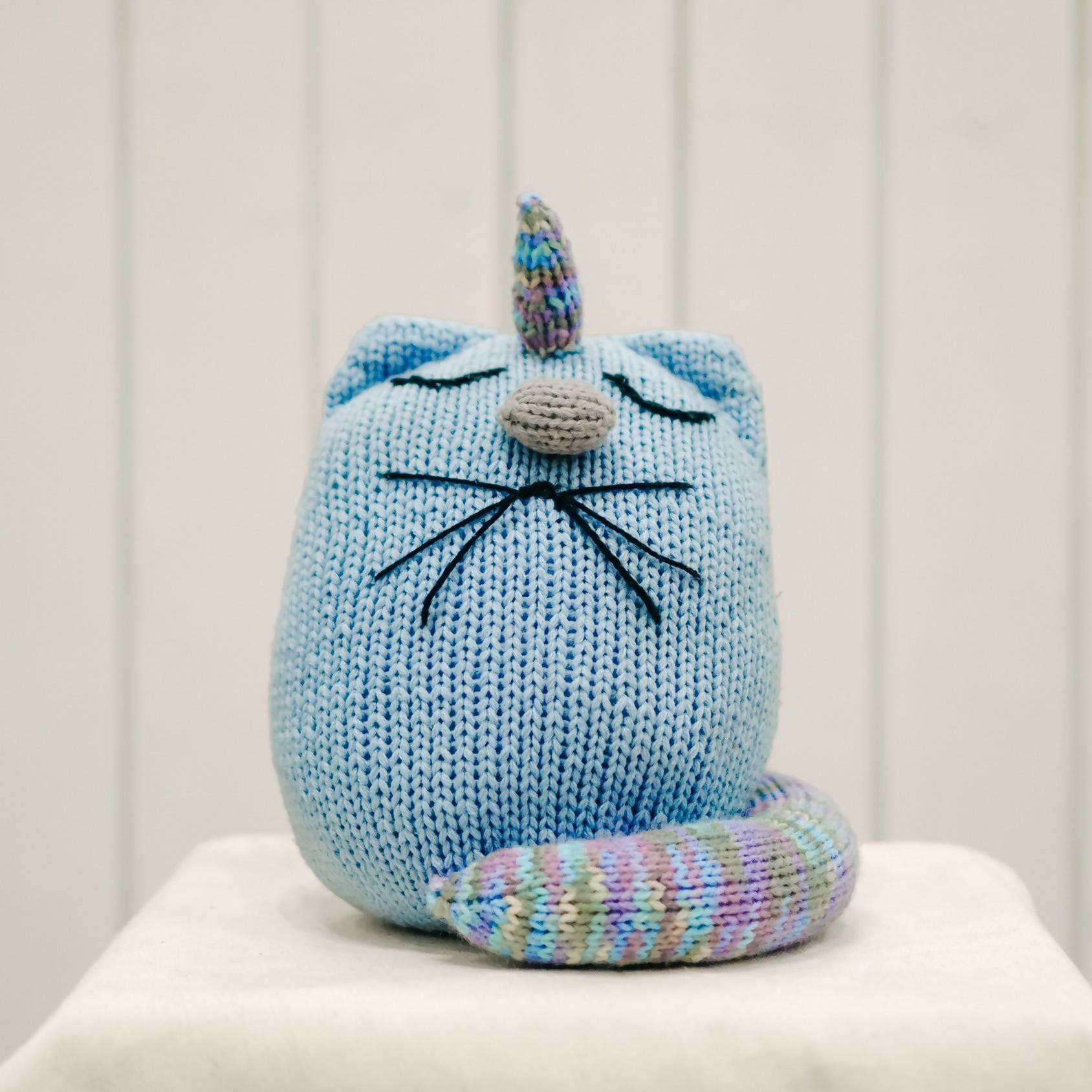 Unicats are about 8.5 inches tall and 6.5 inches wide.  But do remember that each Unicat is uniquely handknit and may vary slightly in size.