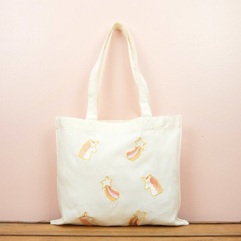 Unicorns and Shooting Stars on Light Canvas Mini Tote
