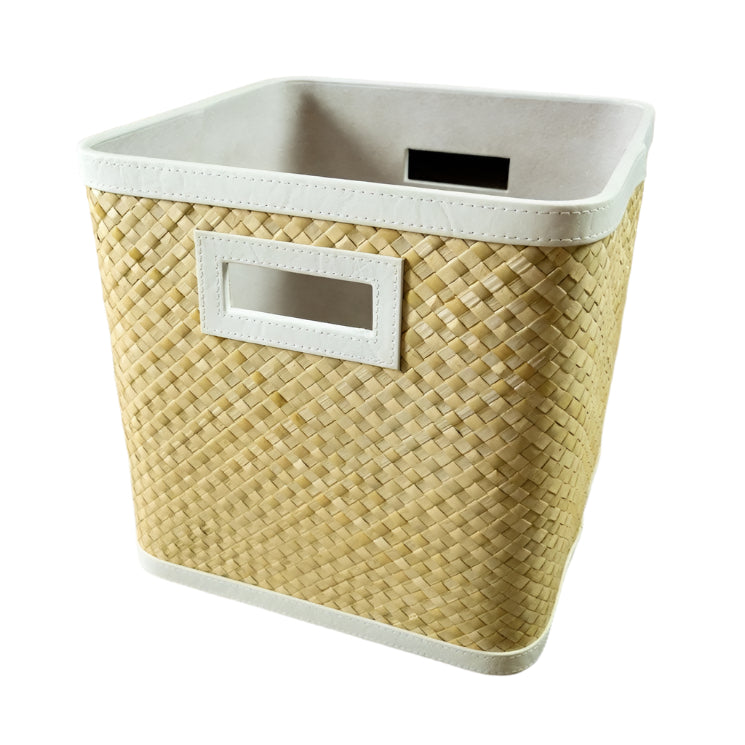• Materials: Handcrafted from exquisitely woven pandan material with white quality faux leather trim.
