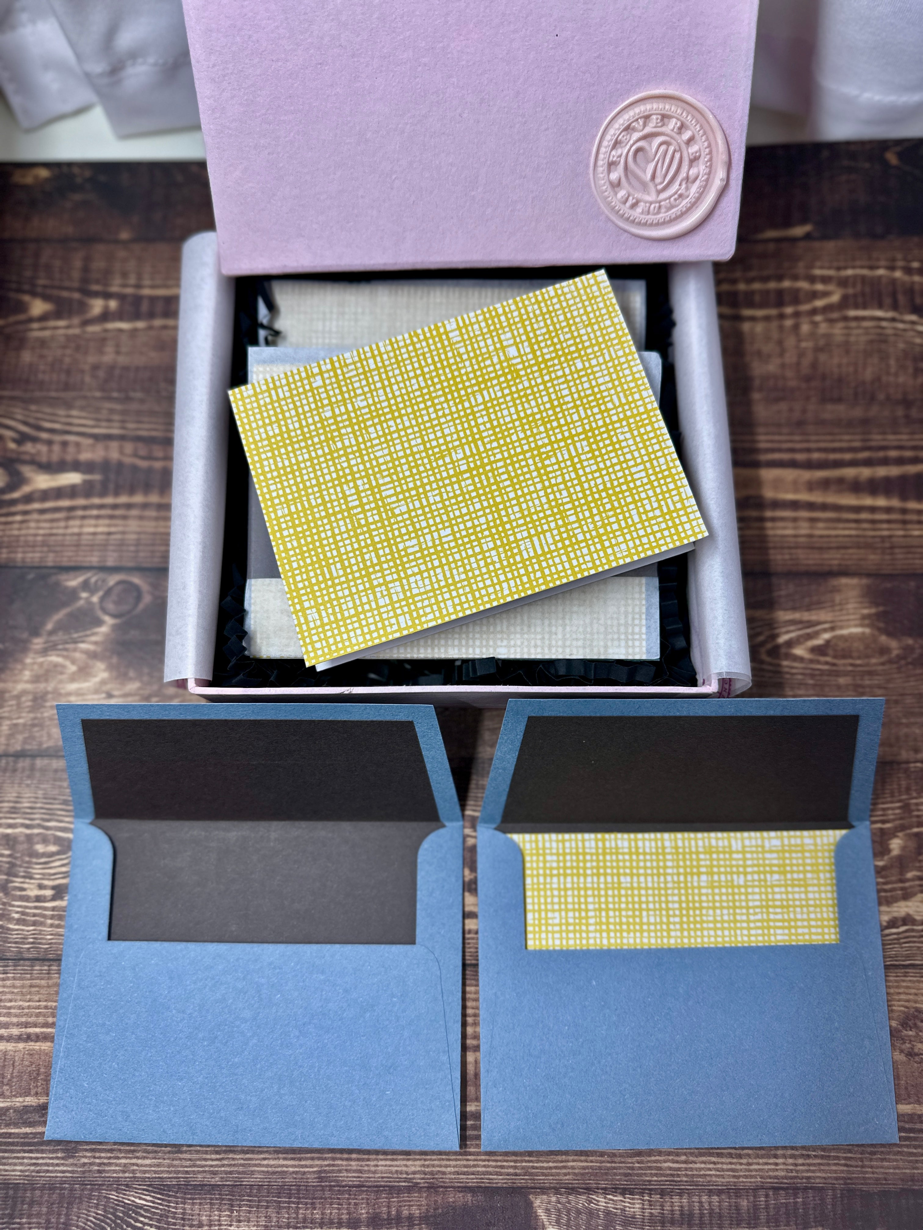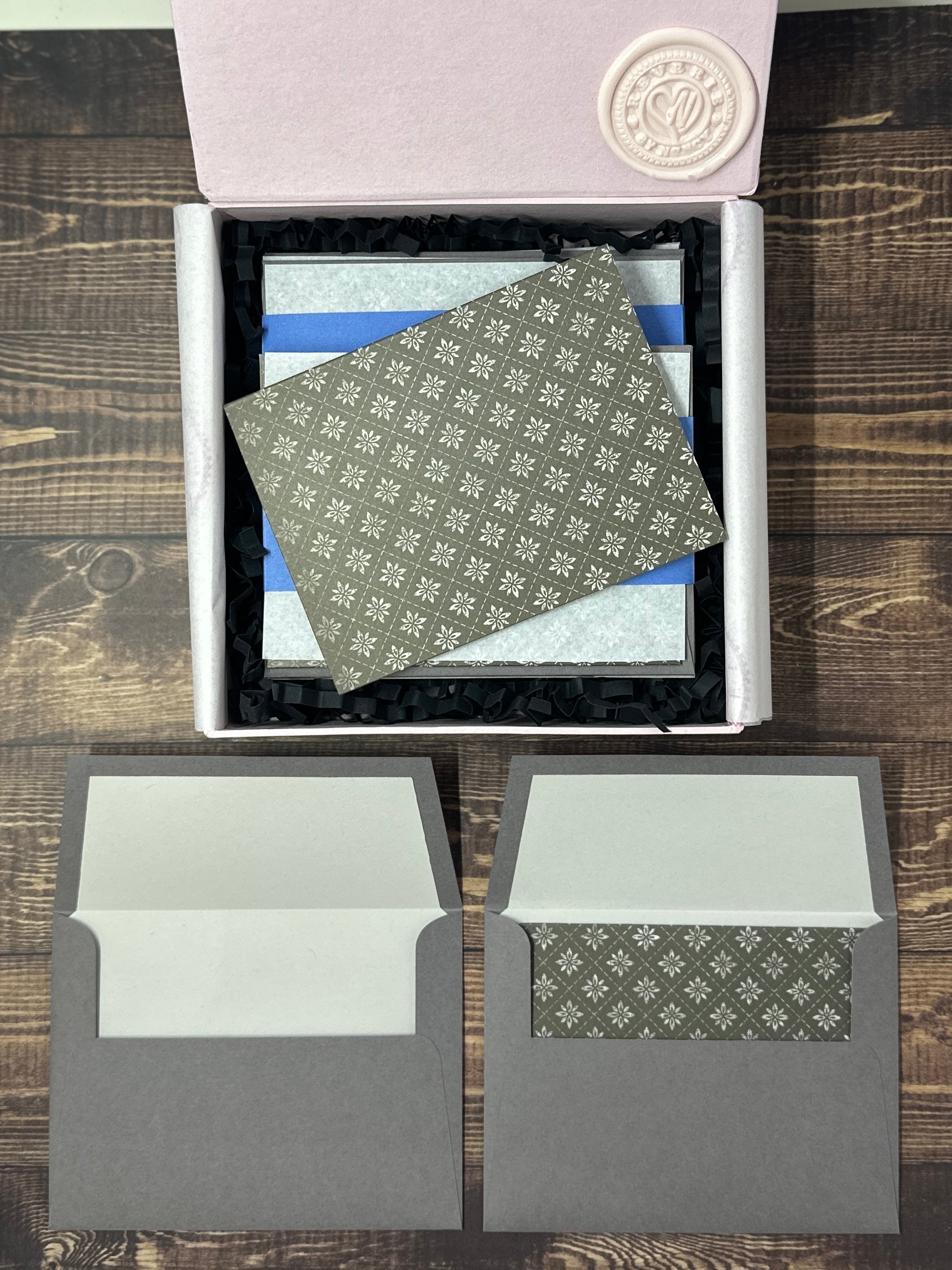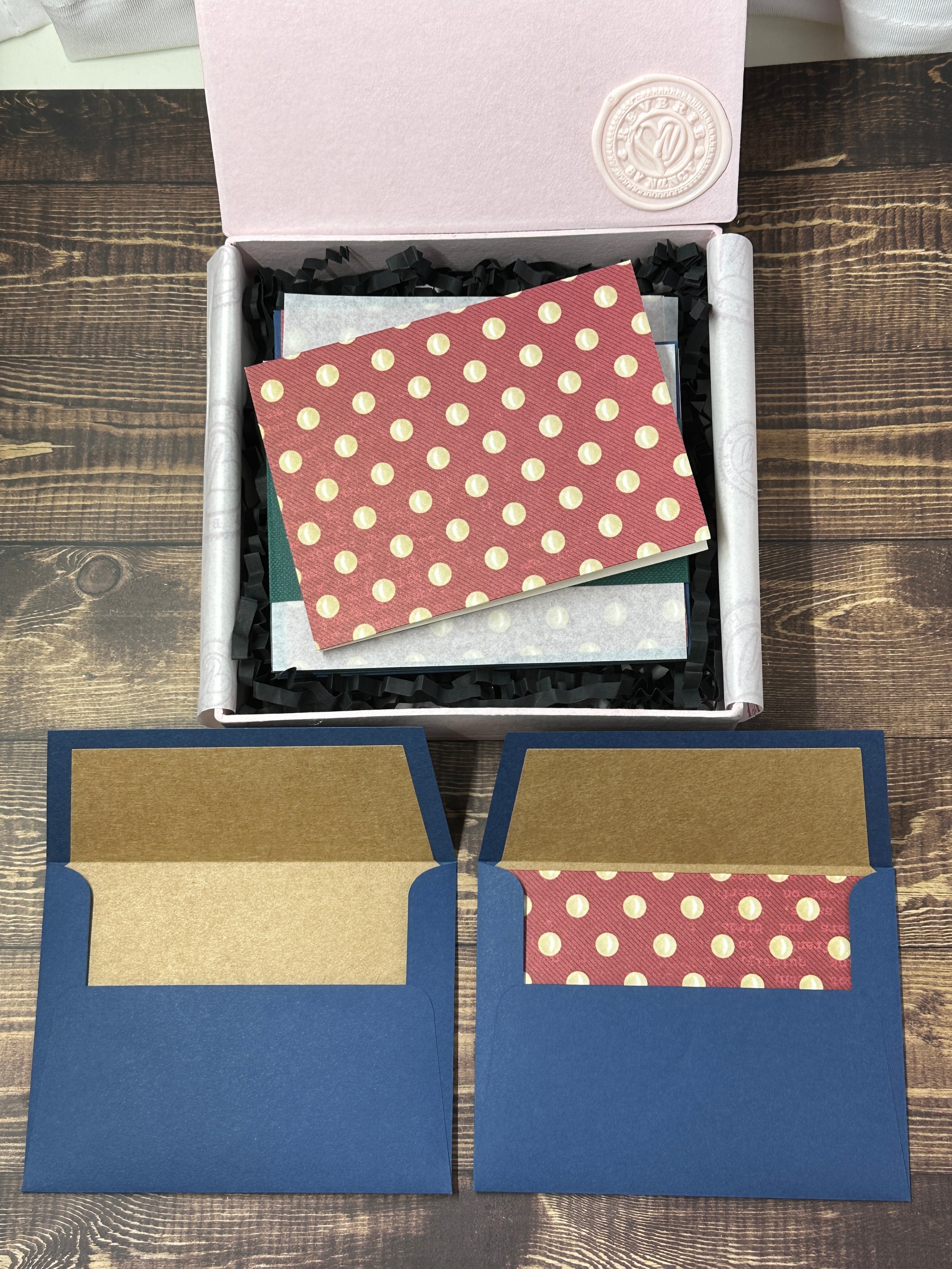 Limited Edition Set ♥️ These set of 10 folded cards are crafted from Nancy's personal paper collection, lovingly saved over the years.Only 6 sets, one design each — once it’s gone, it’s gone.We may never find these beautiful printed papers again, making each set a meaningful keepsake.Exclusively at Frankie Rockwell & online.Reverie by Nancy creates all stationery with premium specialty paperDelicately crafted and handmade with care - please handle gently