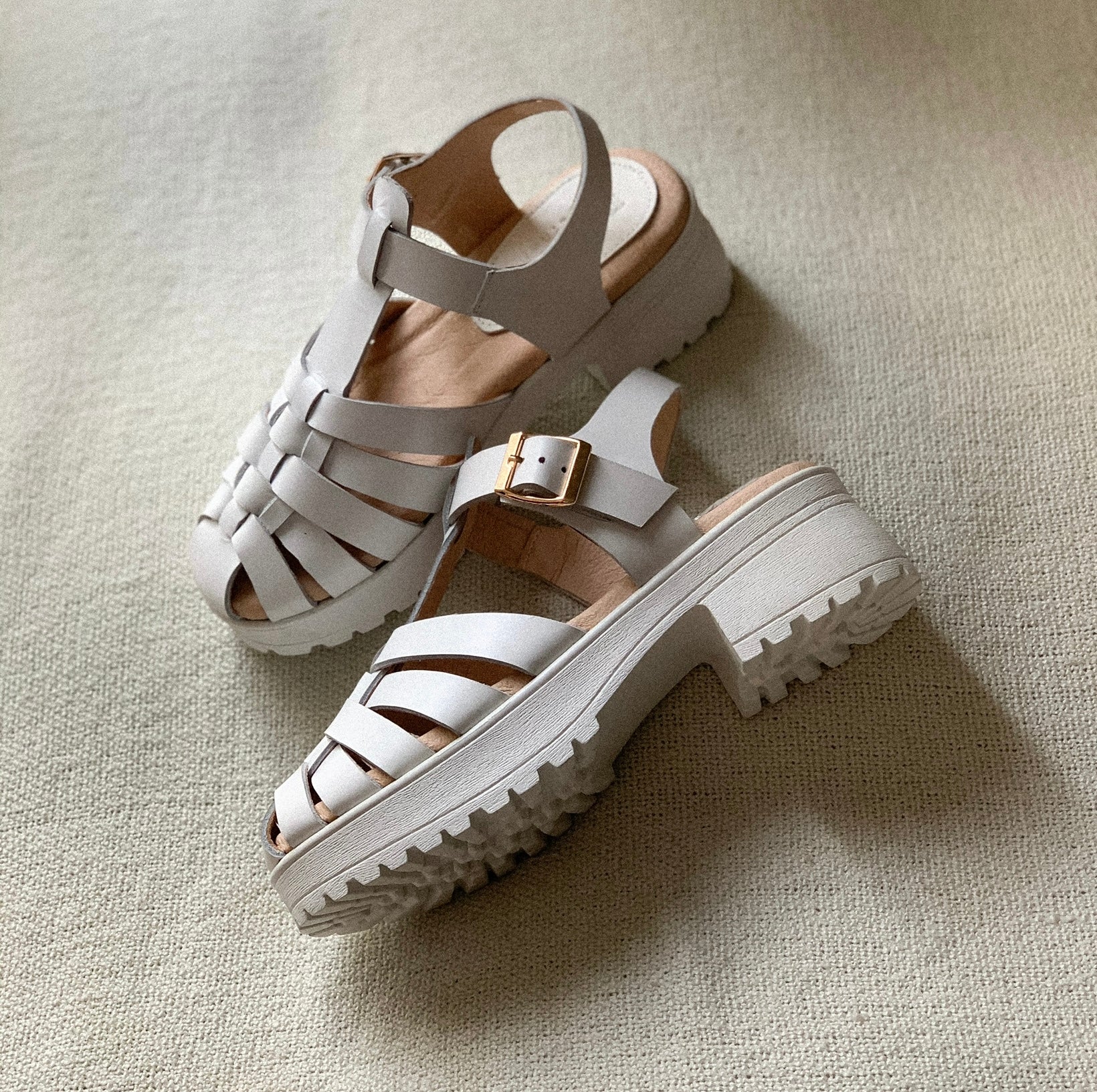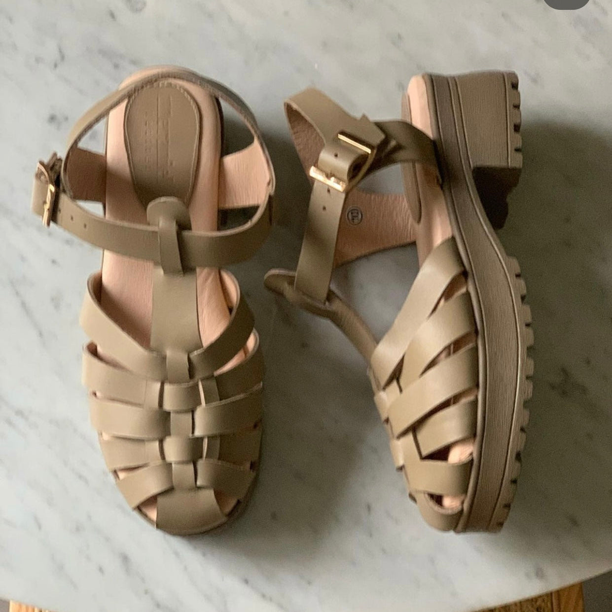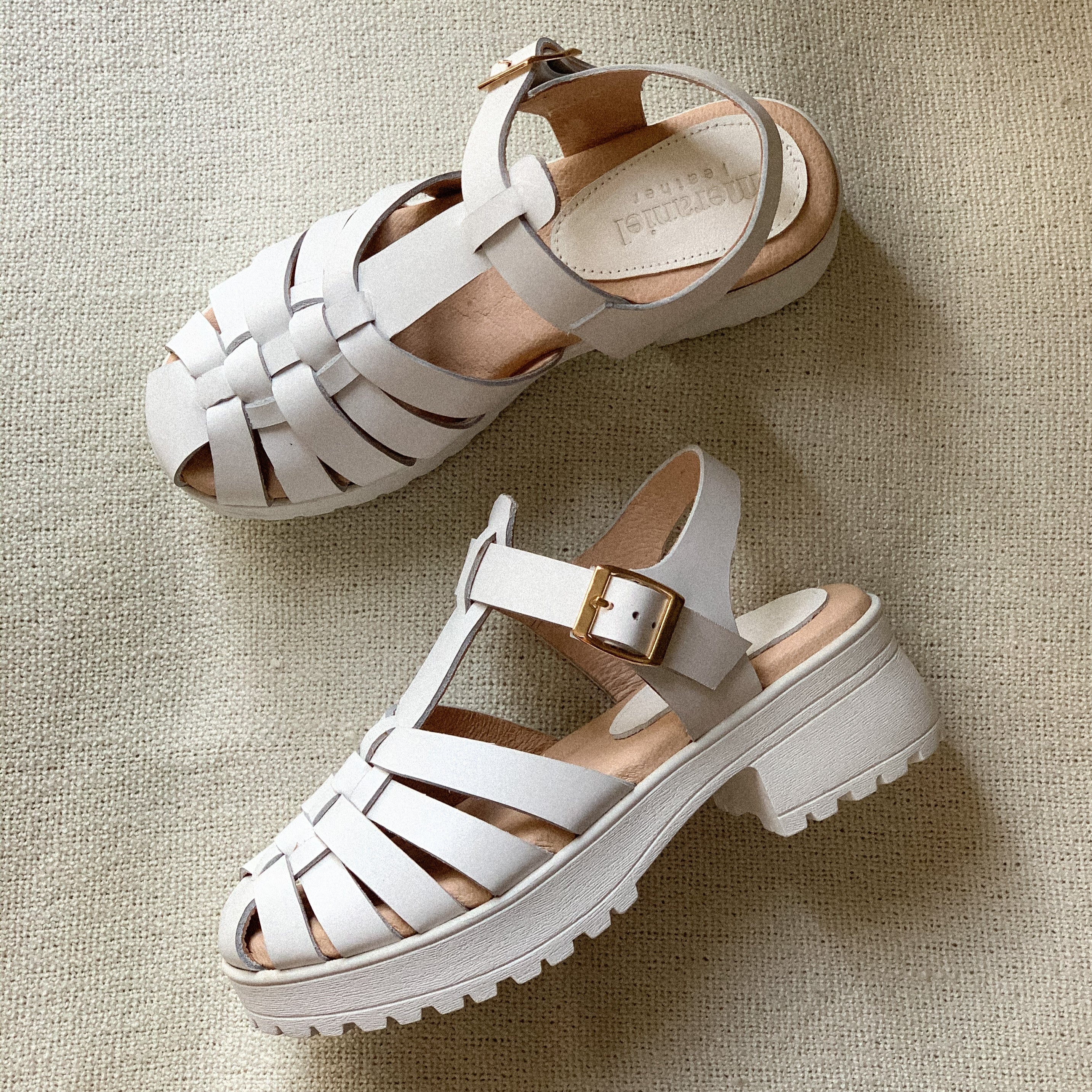 - genuine leather upper straps, lining, and insoles