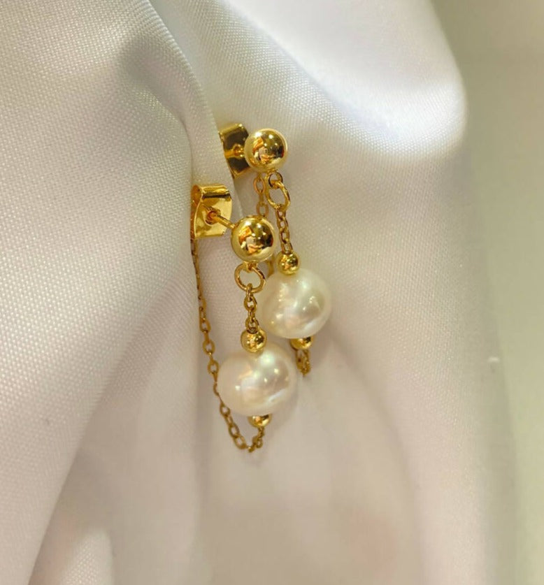 Freshwater Pearl Earrings Material: Gold Plated Chain Shape: Potato Size: 8-9 mm Spacer: Gold Plated Balls