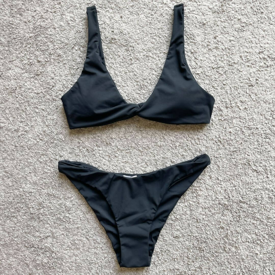 Victoria Set is only produced in limited pieces per size and per color.  Knotted scoop neck bikini top Hook back V waist bottom Mid cheeky coverage Fully lined Comes with removable soft pads Care instruction: hand wash cold, do not bleach, do not iron Size Guide   S M L XL Bust 30-32 “ 33-36 “ 37-38 ” 39-40 “ Waist 24-26 “ 27-29 “ 30-32 “ 33-34 “ Hips 33-35 “ 36-38 “ 39-40 ” 41-42 “ *Tip: if you are in between sizes, size down if you are petite and size up if you are taller*Colors may slightly vary depending on your screen / monitor
