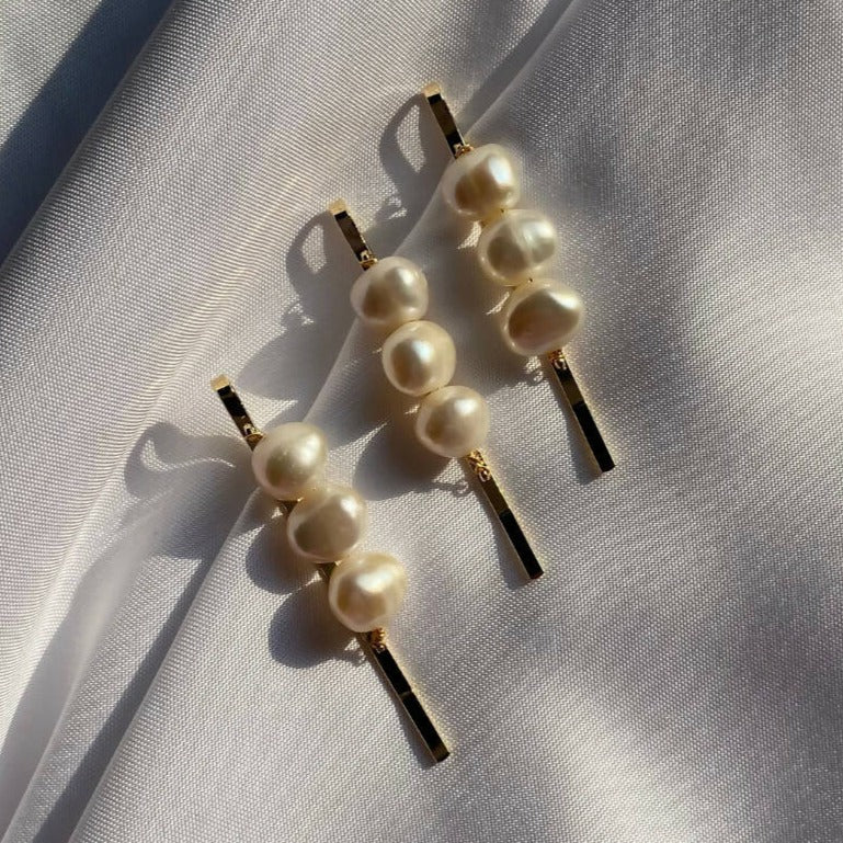 Baroque Freshwater Pearl Hair Clip Material: Gold Plated Shape: Potato Size: 7-8 mm