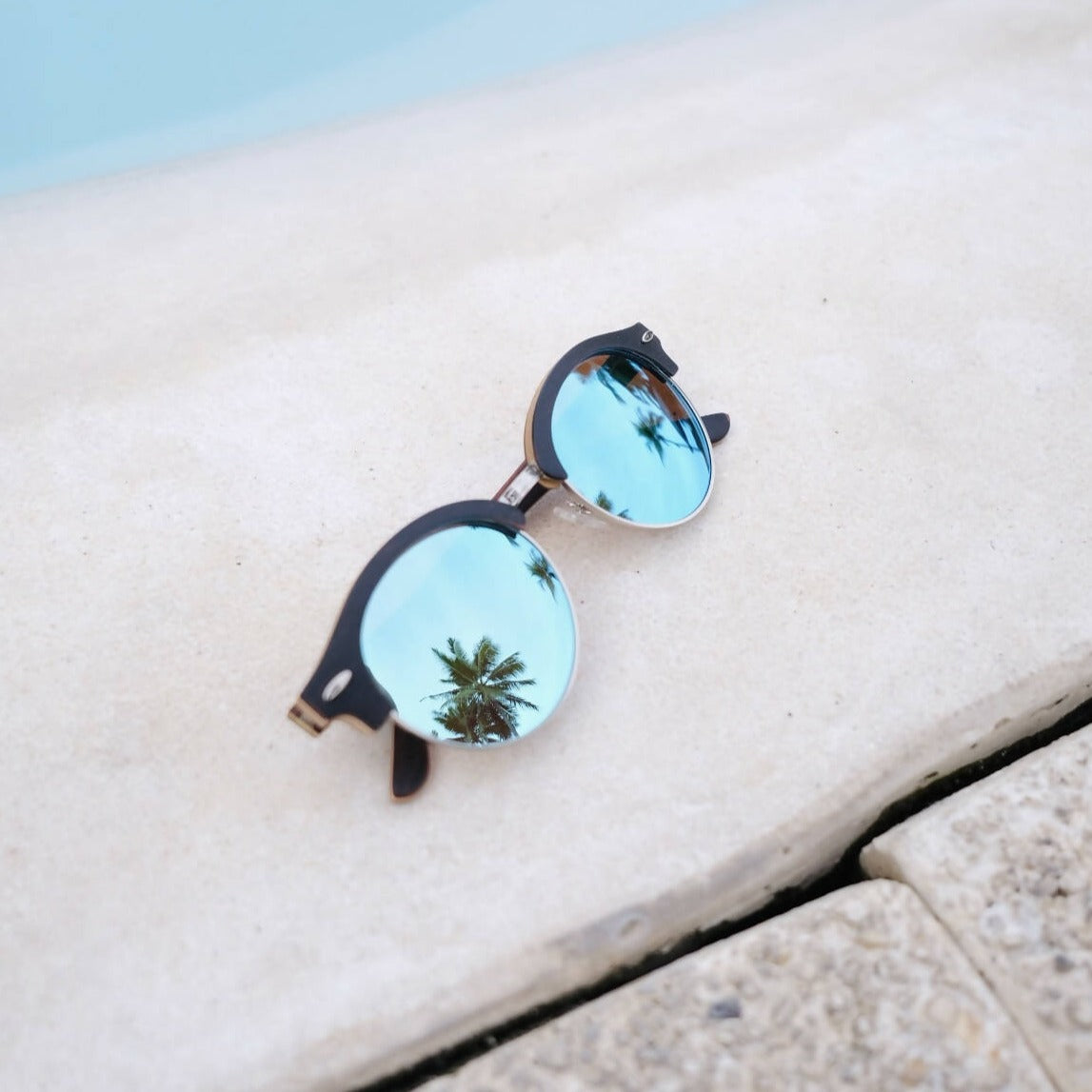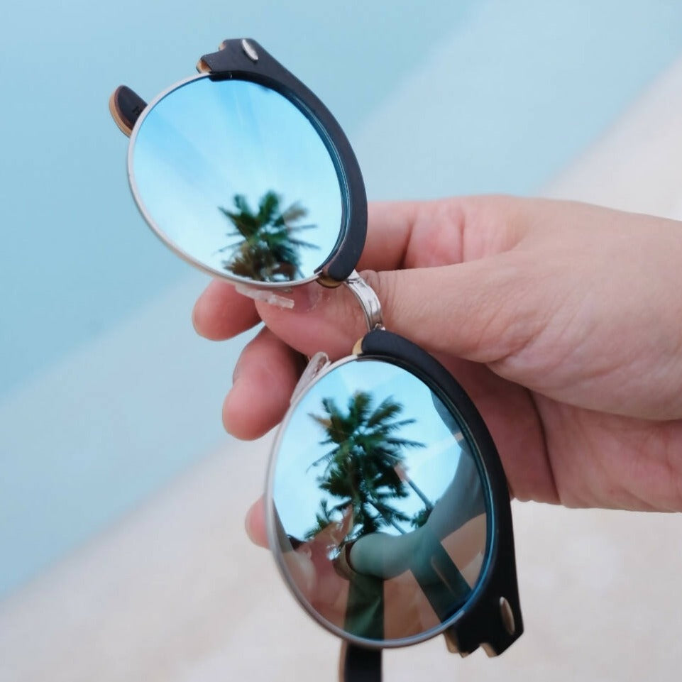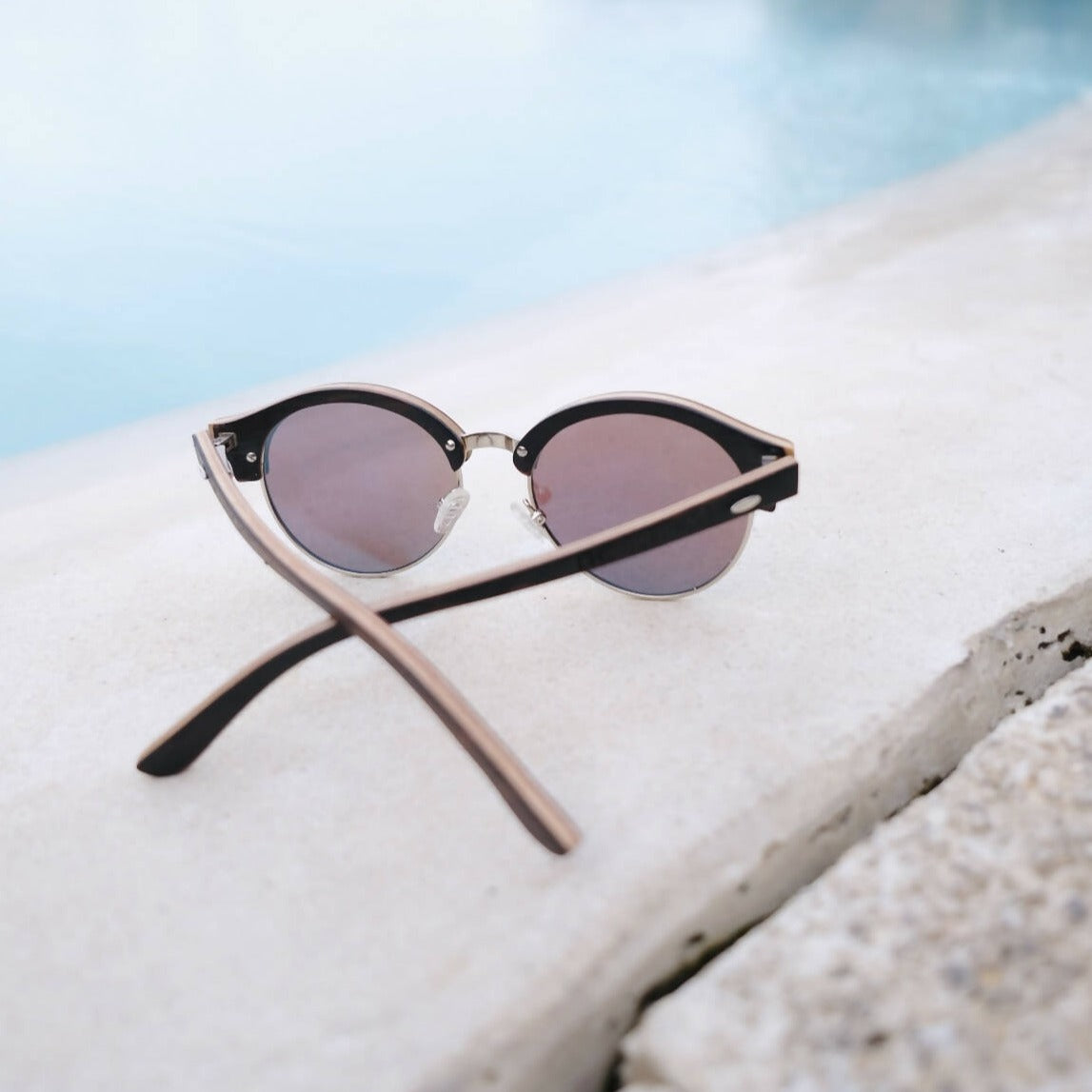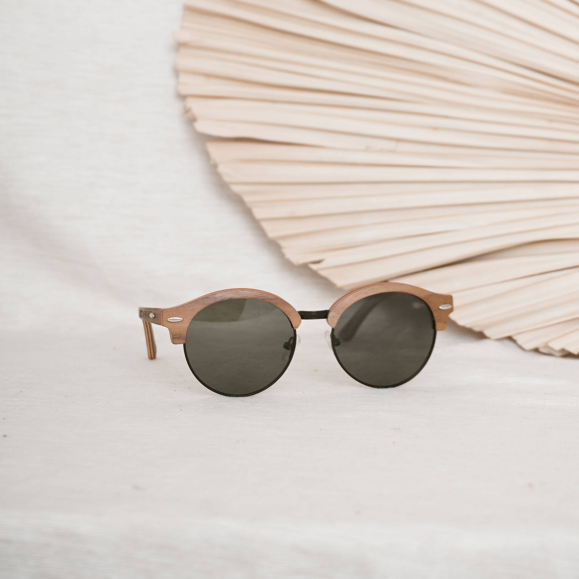 Made from sustainably sourced natural wood featuring dash rivets on the front, metal skiving on the bridge, metal spring hinges and polarized lenses with built-in UV400 protection. Size: Lens - 50 mm | Bridge - 20 mm | Temple - 145 mm