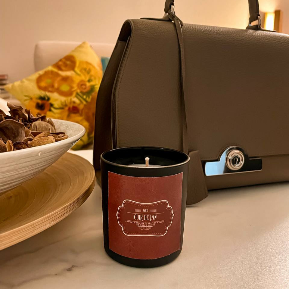 A smooth balance of leather's depth and musk's allure. Hand poured. Soy wax.