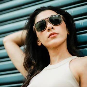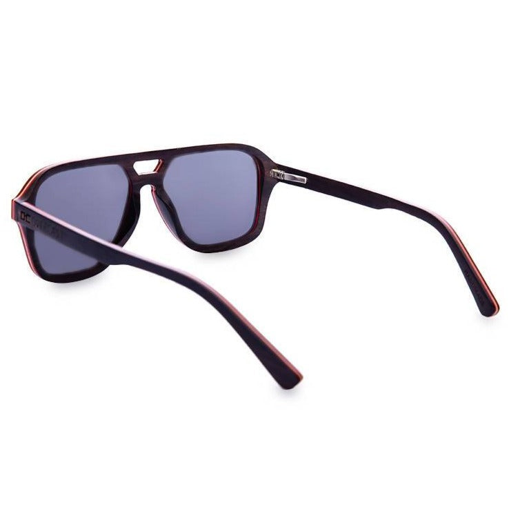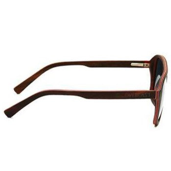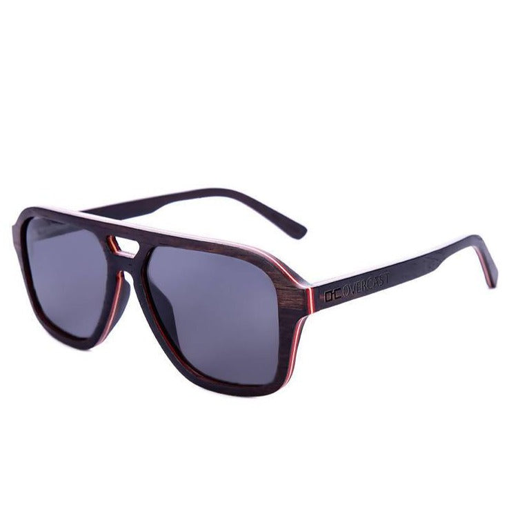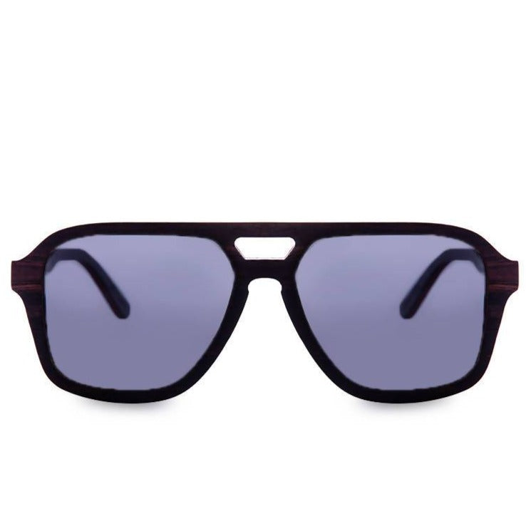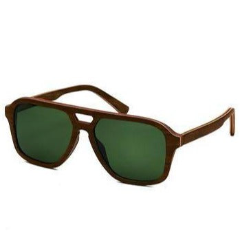 Sustainable wooden geometric sunglasses. • Made from sustainably sourced walnut/ebony wood with thin stainless steel sheets• Double-bar bridge• Metal spring hinges • G-15 polarized lenses with built-in UV protection Lens - 52 mm | Bridge - 20 mm | Temple - 146 mm