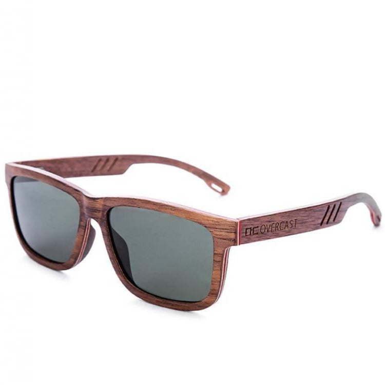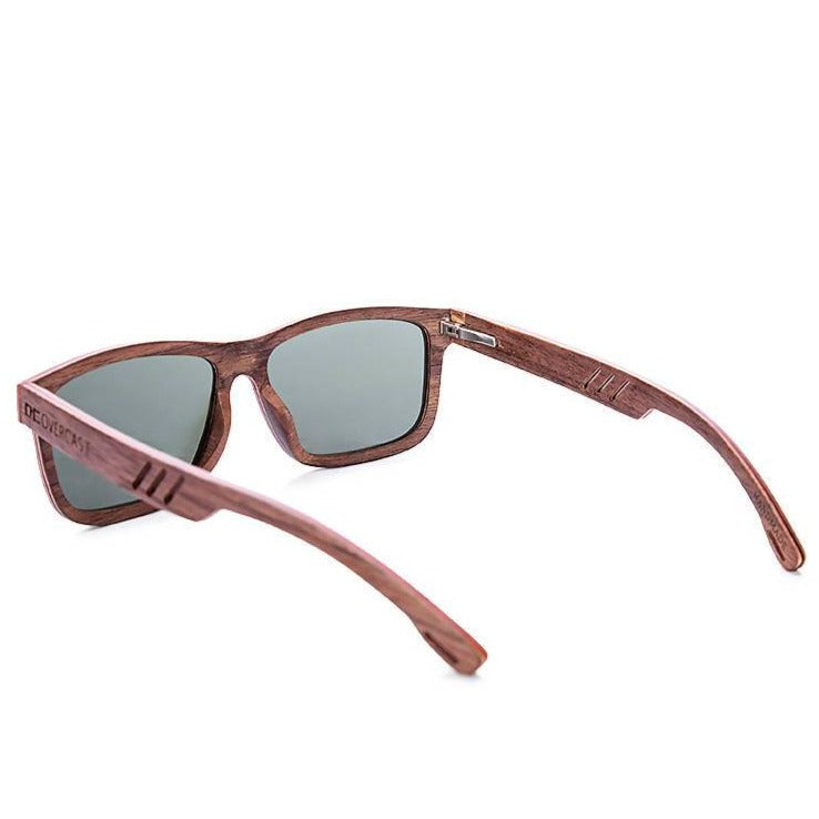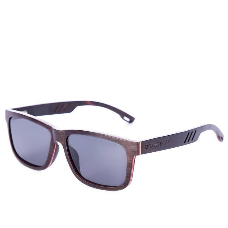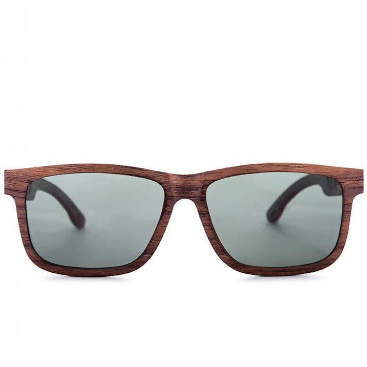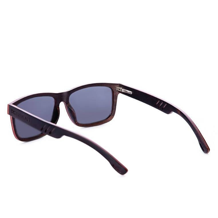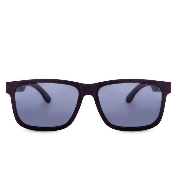 Sustainable wooden rectangle sunglasses. • Made from sustainably sourced skateboard wood• Detailed wood temples• Saddle bridge• Metal spring hinges • Smoke polarized lenses with full UV protection Lens - 52 mm | Bridge - 20 mm | Temple - 141 mm