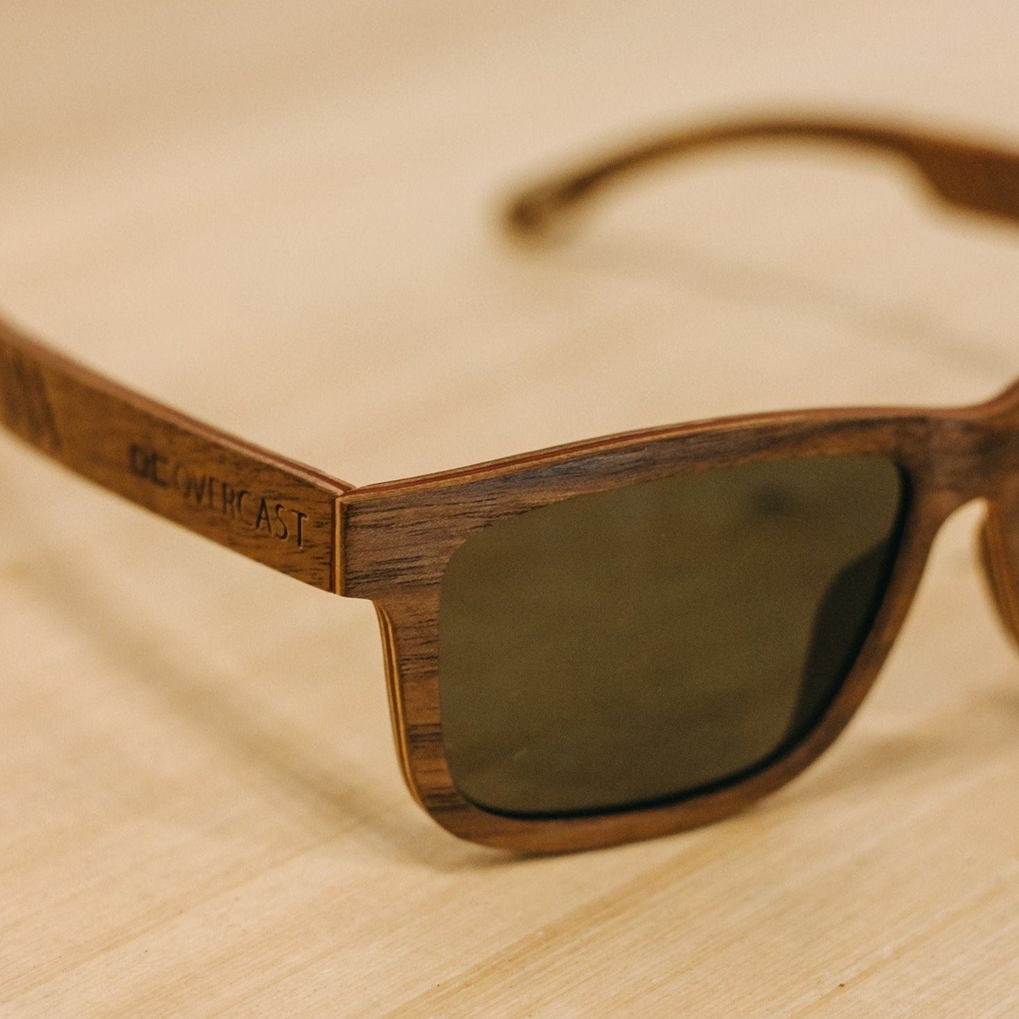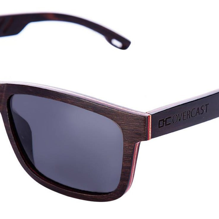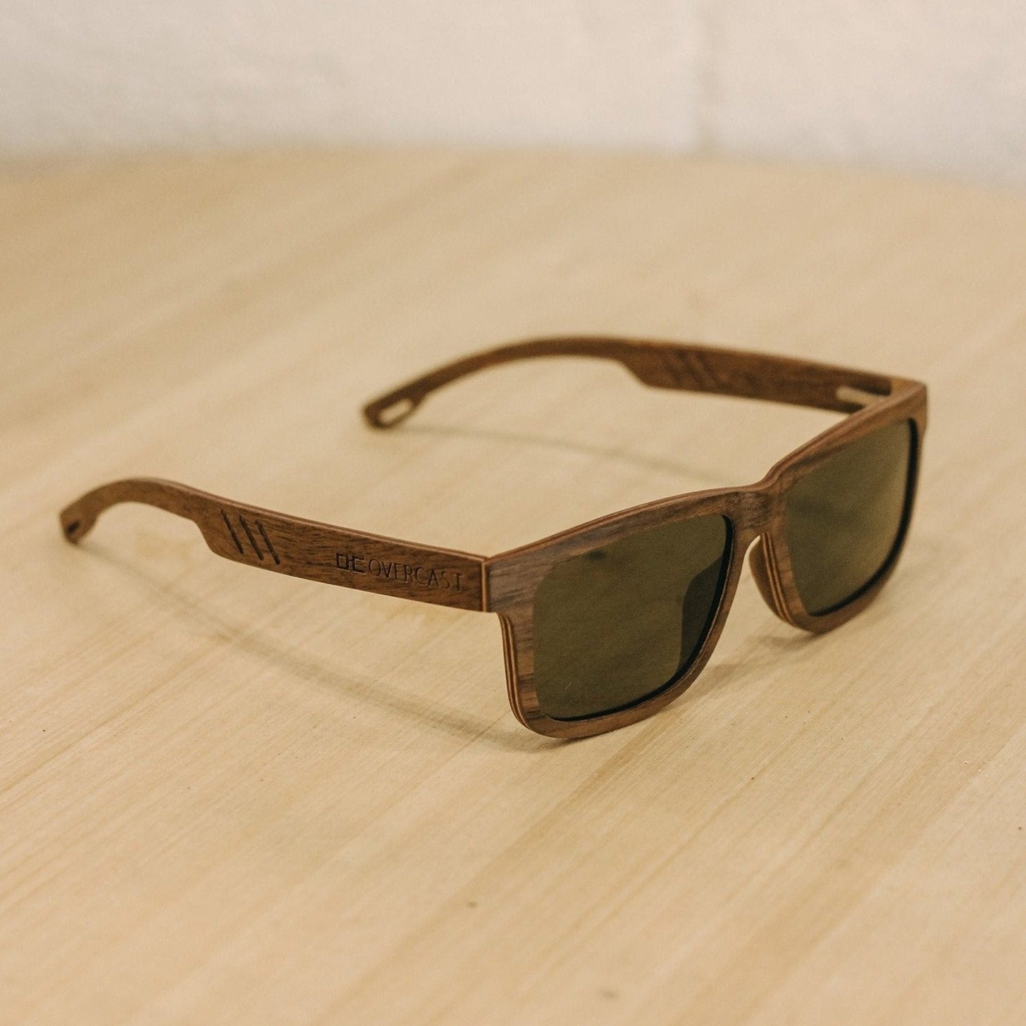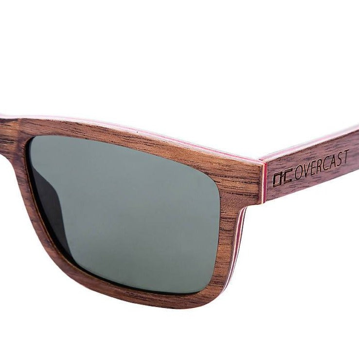 Sustainable wooden rectangle sunglasses. • Made from sustainably sourced skateboard wood• Detailed wood temples• Saddle bridge• Metal spring hinges • Smoke polarized lenses with full UV protection Lens - 52 mm | Bridge - 20 mm | Temple - 141 mm