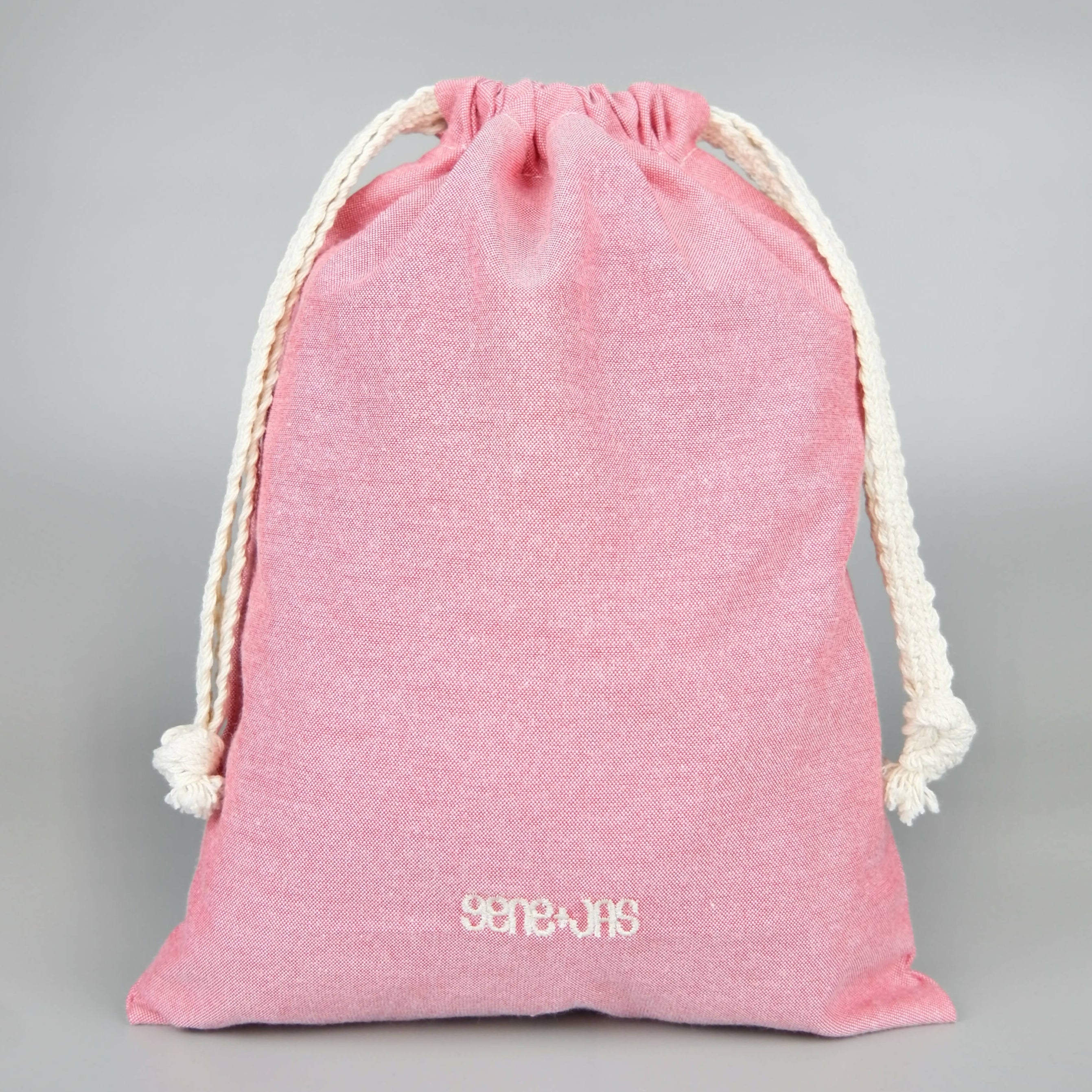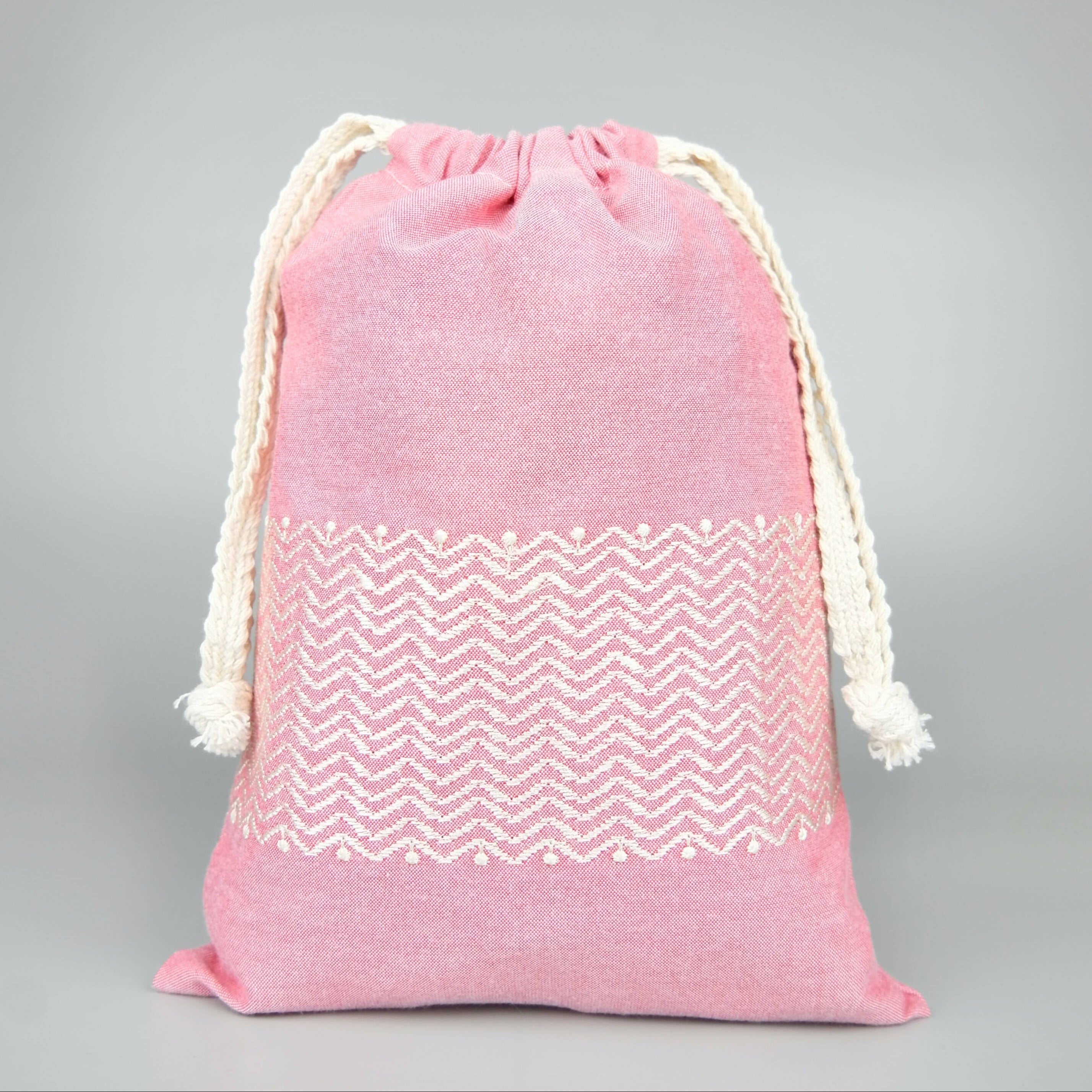 Yana on Red Cotton Chambray Medium Drawstring Pouch