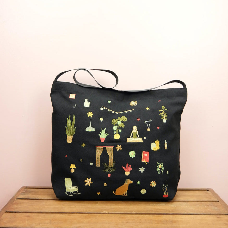 Yoga on Black Canvas Medium Sling Bag